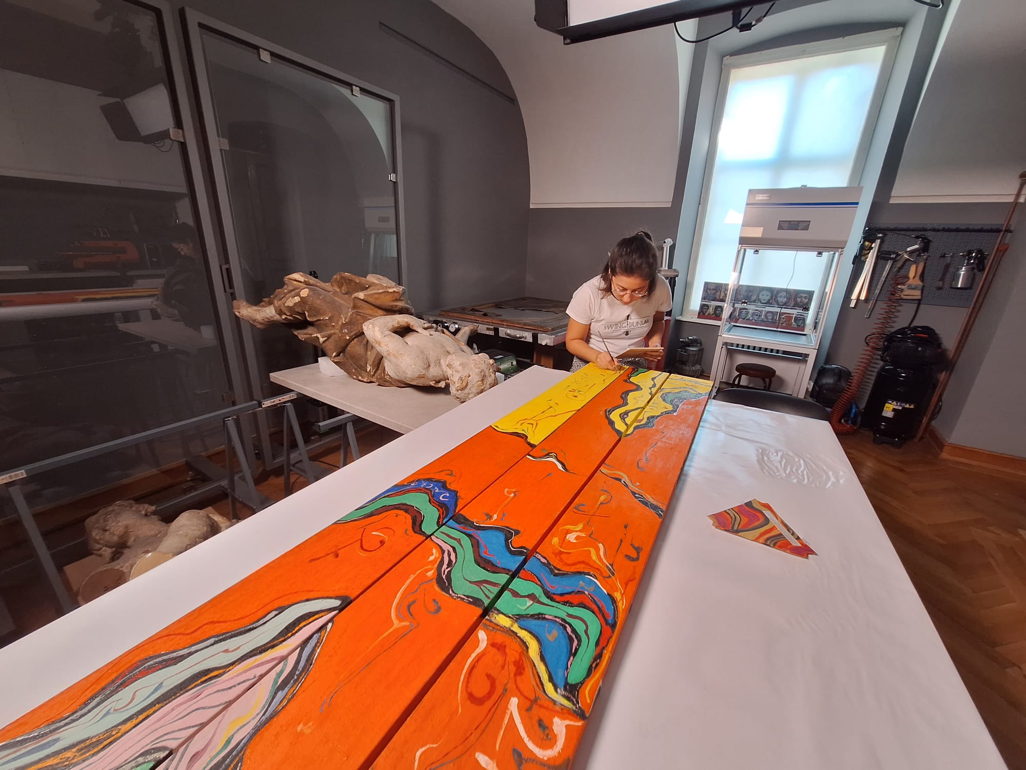 De câteva luni, cei care trec pragul Muzeului de Artă din Timișoara au ocazia să vadă, la finalul expozițiilor, un laborator de restaurare. Două tinere restauratoare talentate, Aurelia Mihuț și Magda Babău, readuc în forma inițială picturi și sculpturi atinse de patina timpului. În această perioadă specialistele o au alături pe Anastasija Antić, o tânără masterandă originară din Belgrad.