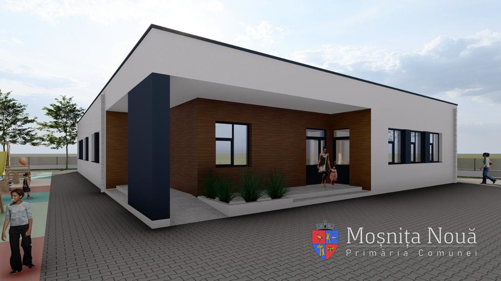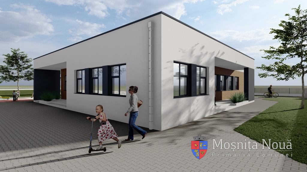 Construcția va fi realizată pe str. Primăriei din localitatea Moșnița Nouă. Centrul va avea o suprafață construită de 412,10 mp, compusă din trei săli de clasă, hol, spații administrative, cabinet medical și grupuri sanitare.