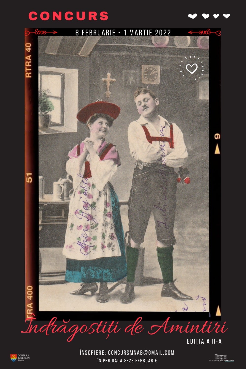 „Trimite pe concursmnab@gmail.com o fotografie „vintage” (din arhiva proprie) care să simbolizeze «îndrăgostiții». Adaugă-i o scurtă descriere, să primească șarmul semnăturii tale”, transmit cei de la MNaB.