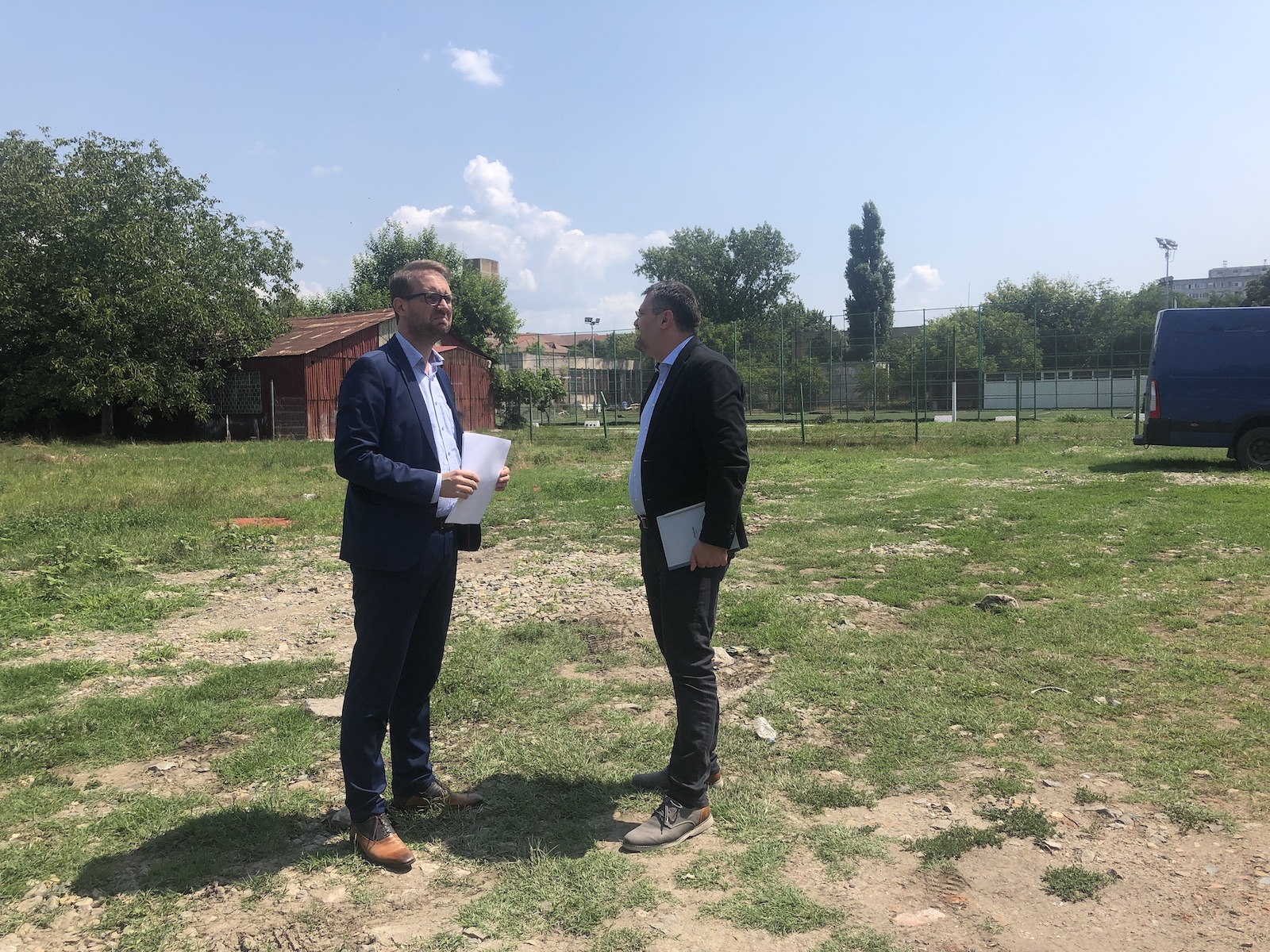 Cristian Ghinea, ministrul Investițiilor și Proiectelor Europene, a fost prezent vineri la Timișoara. A mers pe teren împreună cu primarul Dominic Fritz, viceprimarul Ruben Lațcău și vicepreședintele CJ Timiș Cristian Moș. Vizita pe terenul viitoarei maternități a fost anunțată de primărie la ora 12.15, dar autoritățile au ajuns la fața locului 20 de minute mai târziu. S-a stat cam cinci minute la locația viitoarei maternități, prilej de câteva fotografii și o strângere de mână. Tot pentru poze.