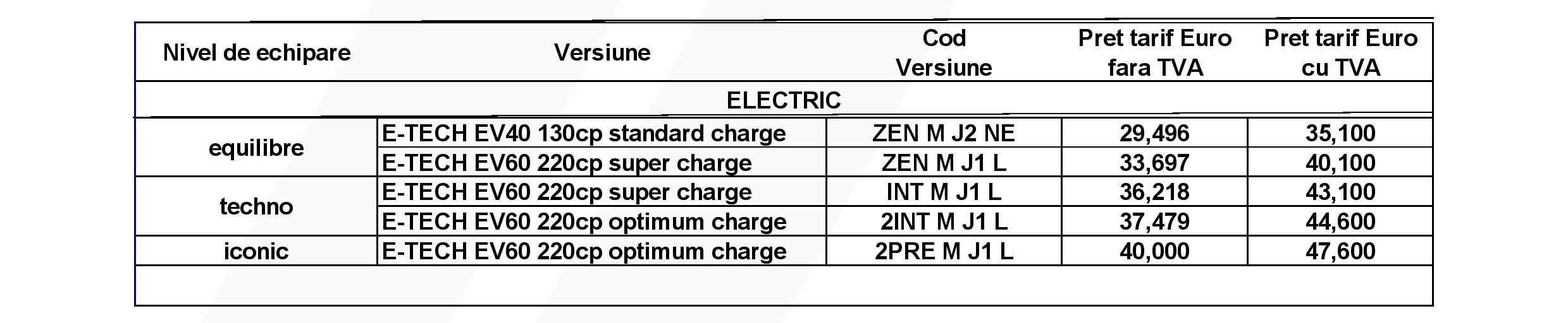 Cu un preț de pornire de 47.600 € TVA inclus, versiunea ICONIC, vârf de gamă, are scaune ajustabile electric pentru șofer și pasager, cu reglaj lombar, masaj și memorarea pozitiei, sistem multimedia OpenR Link 12″: navigație, servicii Google, sistem audio premium Harman Kardon 9 difuzoare (4 Bo + 4 Twi + 1 SW) și tapițerie piele Riviera Titanium Black.