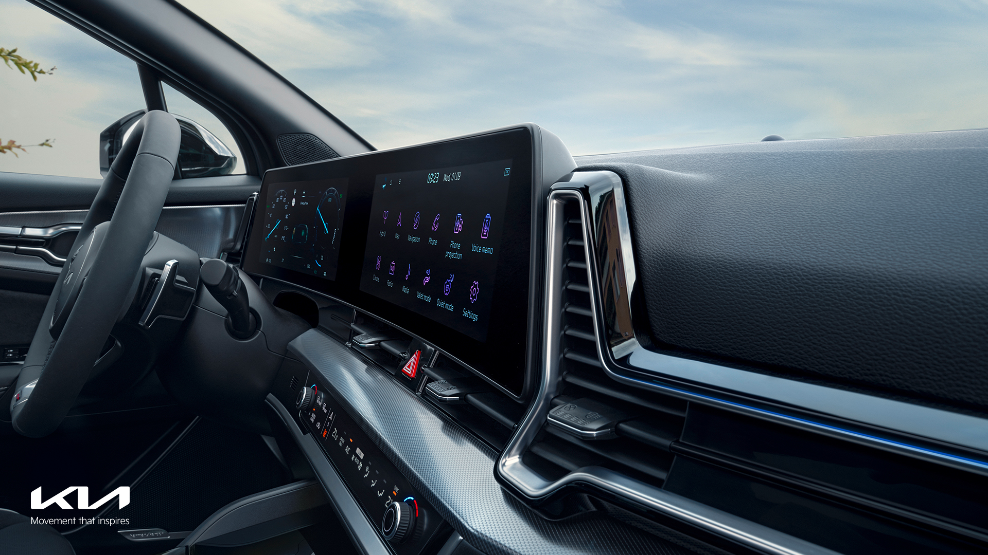 Ecranul tactil de 12.3 inch de înaltă tehnologie și controlerul integrat avansat acționează ca centru nervos pentru conectivitatea șoferului și a pasagerilor, dar și pentru nevoile de funcționalitate și utilizare. Ambele sisteme au fost create pentru a fi ușor de utilizat, extrem de intuitive și plăcute la atingere. Panoul de instrumente de 12.3 inch este echipat cu display-ul TFT LCD (thin-film-transistor liquid-crystal display) de ultimă generație pentru o grafică incredibil de precisă și clară. Cu o conectivitate de înaltă tehnologie atât de avansată și sigură, noul Sportage beneficiază de cele mai recente actualizări de software și hărți prin rețelele wireless sau de date mobile. Software-ul avansat de conectivitate al noului model european Sportage permite utilizatorilor să se conecteze de la distanță cu automobilul lor prin intermediul aplicației pentru smartphone Kia Connect. Tehnologia interactivă, ușor de folosit, oferă utilizatorilor acces la funcții cheie, cum ar fi serviciile Kia Live, navigarea online, recunoașterea vocală online și integrarea cu calendarul din smartphone. Aplicația Kia Connect oferă utilizatorilor o liniște sufletească deplină, verifiicând printr-o simplă atingere dacă modelul Sportage este blocat și dacă geamurile sunt închise, dar și comoditate deplină, informând utilizatorii exact unde și-au parcat ultima dată SUV-ul.