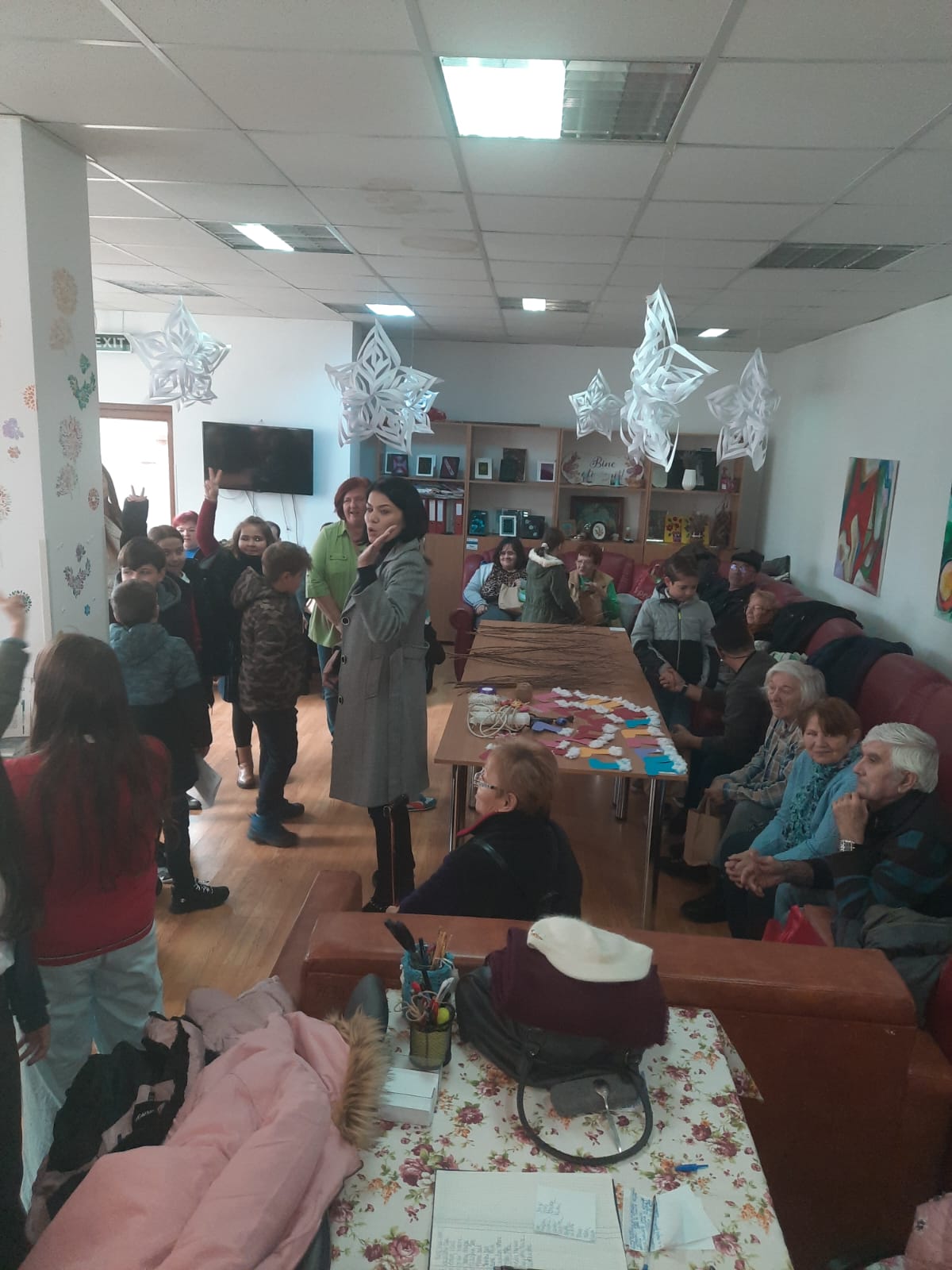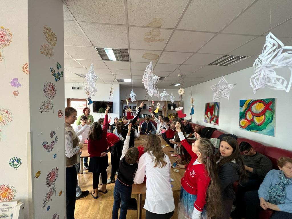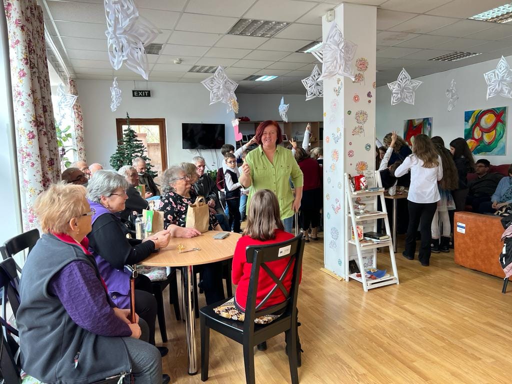 Aici, bunici și copii au cântat colinde și au împodobit tradiționalul brad de Crăciun.