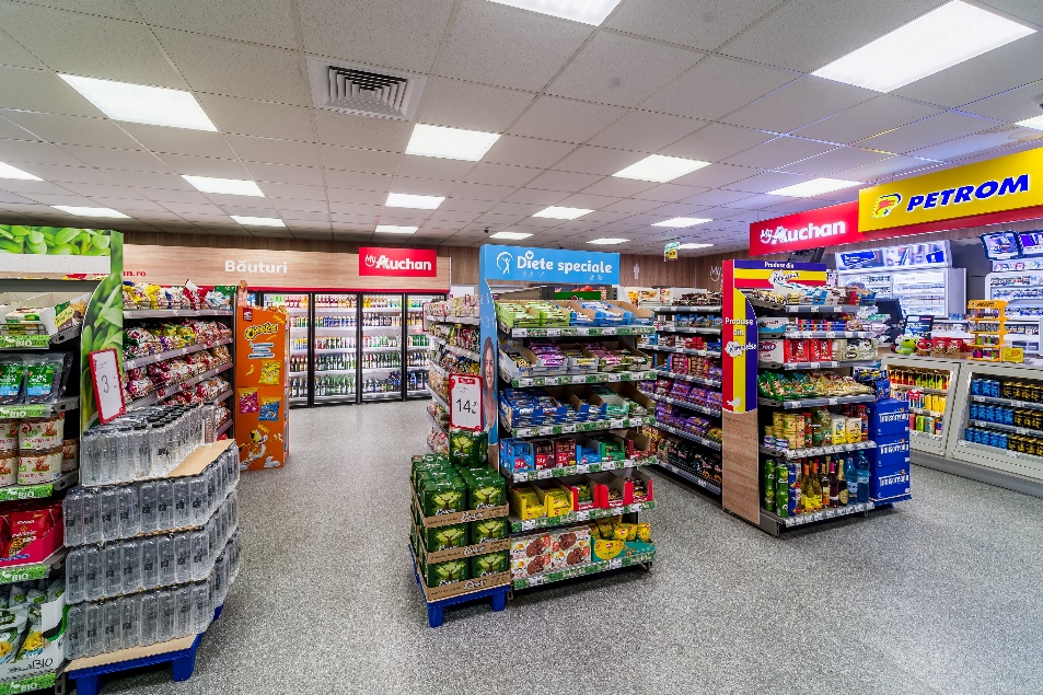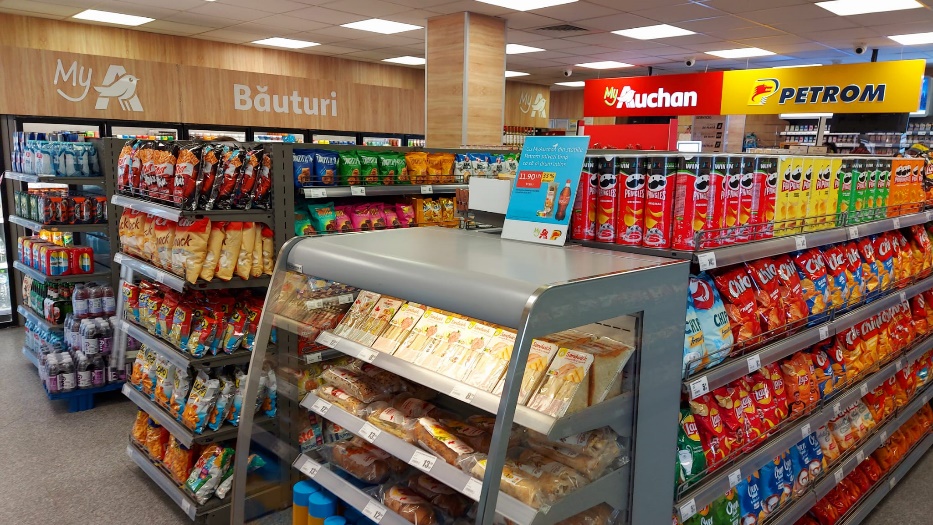 Magazinele MyAuchan din stațiile Petrom îți pun la dispoziție o varietate mare de produse, calitate, prospețime, prețuri bune și servicii utile. Aici poți găsi atât produse pentru consum imediat, cât și pentru acasă, corner-ul cu excepționala cafea proaspătă Costa Coffee, ingrediente de bază (făină, mălai, orez, paste), produse proaspete (fructe, sandwichuri, lactate), sosuri, produse congelate, bere, vin, dar și alte băuturi, aperitiv sărat, dulciuri, produse de băcănie și non-alimentare, precum cosmetice, detergenți, jucării, produse pentru copii și accesorii auto.