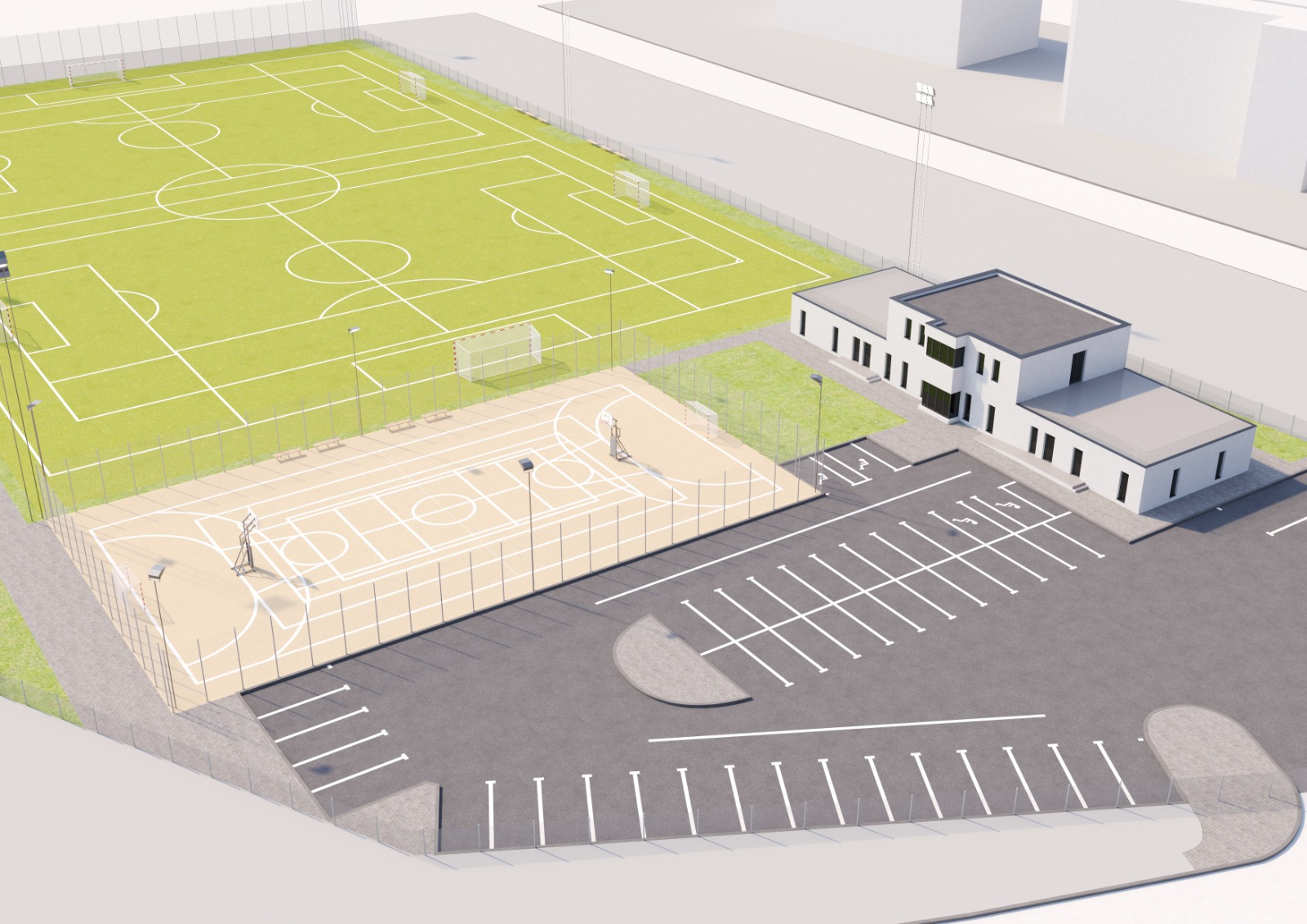 Viitoarea bază sportivă ar trebui să aibă un teren de joc standard, de 105/68m, o instalație de nocturnă și tribune pentru 500 de spectatori, dar și un teren mic, de 20/40 mp, pentru minifotbal, baschet sau handbal. Va fi amenajată și o miniparcare cu o clădire administrativă. Construcția o face CNI, iar primăria o va întreține timp de 15 ani.