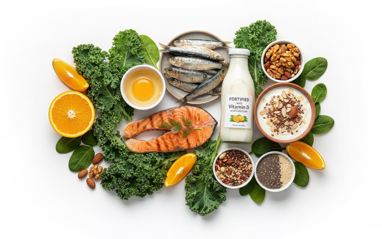 · Adaptarea dietei, prin includerea alimentelor bogate în nutrienți esențiali pentru sănătatea osoasă: