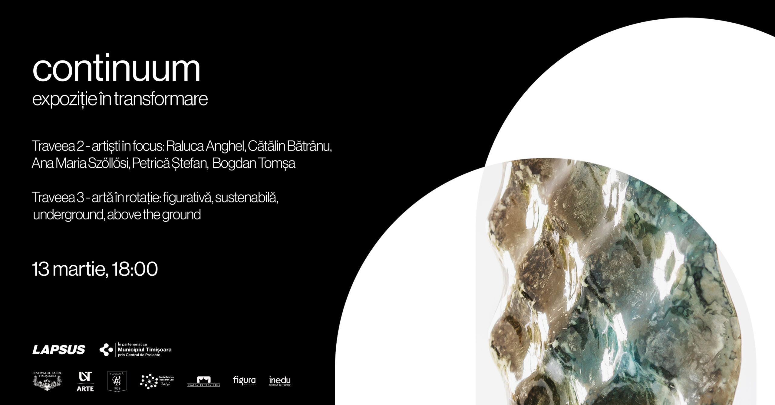 Expoziția de grup intitulată „Continuum” va fi deschisă în spațiul habitat B1, în Bastionul Cetații, în perioada 13 martie - 30 mai 2026. Pentru început expun artiști care au ateliere în cartierul Fabric, însă expoziția va primi, în fiecare lună, o nouă formă, anunță organizatorii.