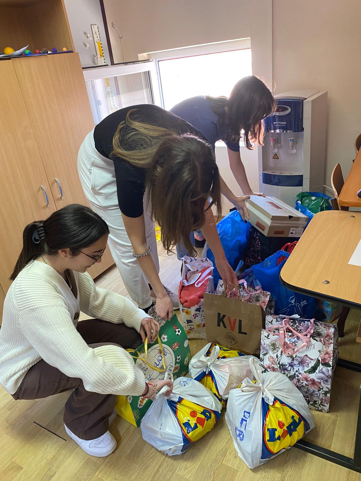 115 pachete cu produse de igienă ajung la fetele, băieții și bebelușii refugiați din Ucraina, grație elevilor din două clase de la Liceul Teoretic „David Voniga” din Giroc.