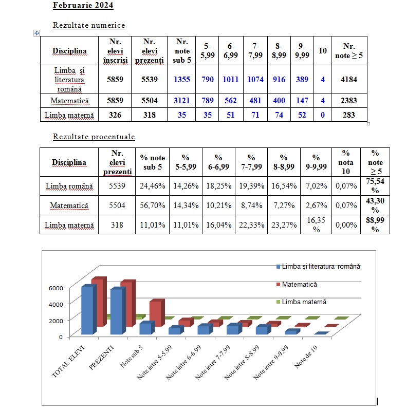 Dacă analizăm rezultatele, se poate observa că avem un procentaj bun la notele de la Limba și Literatura România, iar la Matematică trebuie să găsim metode ca rezultatele obținute să se îmbunătățească foarte mult până la examenul din iunie. Sigur că nu suntem mulțumiți de rezultat, dar sunt convins că prin implicarea în mod decisiv a elevilor, a profesorilor în recuperarea lipsurilor depistate cu ocazia acestei simulări, rezultatele la examen să se îmbunătățească”, a declarat inspectorul școlar general adjunct Cosmin Hogea.