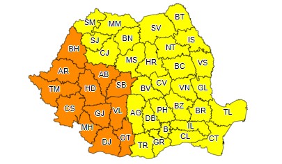 „În intervalul menționat, în Maramureș, Transilvania, Oltenia, Banat, Crișana, vestul și nordul Munteniei și al Moldovei, vor fi perioade cu instabilitate atmosferică deosebit de accentuată. Vor fi vijelii puternice, intensificări ale vântului cu rafale de peste 80…100 km/h, frecvente descărcări electrice și grindină de medii și mari dimensiuni. Aversele vor fi torențiale, iar cantitățile de apă vor depăși local 35…50 l/mp și izolat, îndeosebi în vest, centru și la munte, 70 l/mp”, transmit reprezentanții Administrației Naționale de Meteorologie.