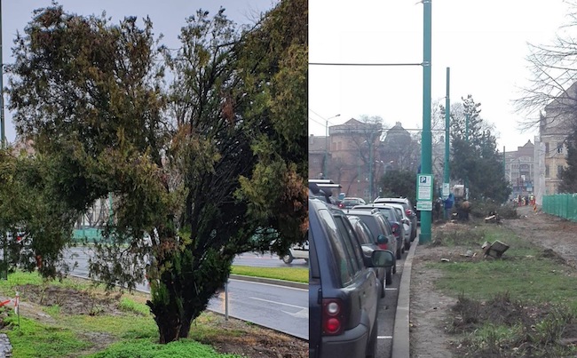 Primăria Timișoara a pus la pământ 16 copaci din specia tuia, numit arborele-vieții, pe Brătianu. Potrivit reprezentanților municipalității, s-a solicitat încă din februarie aviz de la Agenția pentru Protecția Mediului pentru tăierea arborilor.