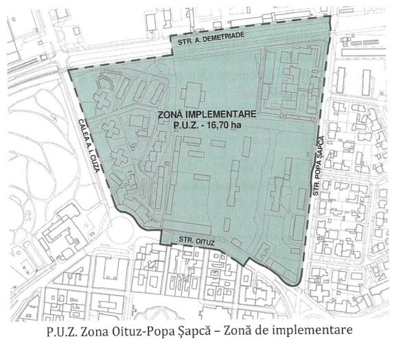 Planul urbanistic este delimitat de str. Popa Șapcă, str. Oituz, Calea A. I. Cuza și str. A. Demetriade. Va avea o suprafață totală de 16,7 hectare.
