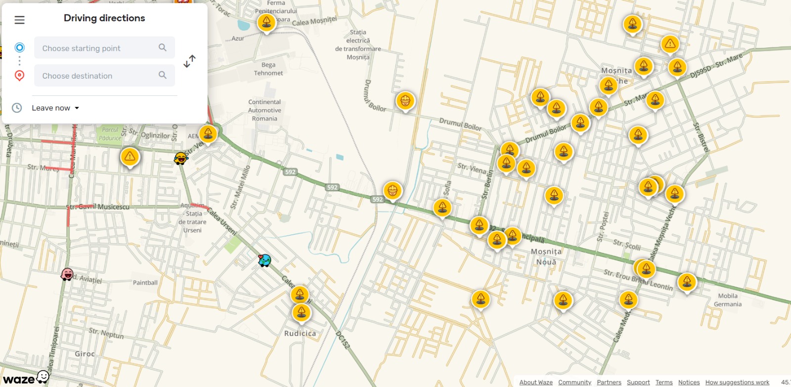 „Vă atrag atenția asupra unei situații unice în România, unde locuitorii unei comune lipite de Timișoara protestează inedit împotriva actualei administrații locale, pentru starea jalnică a drumurilor din comună, marcând pe aplicația Waze gropile din localitate. Astfel, cu imperfecțiunile de precizie ale Waze-ului, totuși comuna Moșnița Nouă arată ciuruită de gropi”, ne-a scris un cititor Tion.
