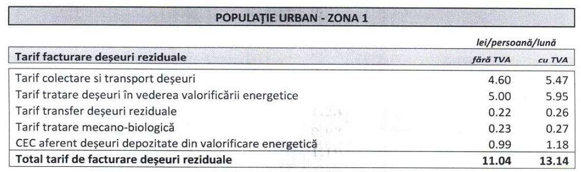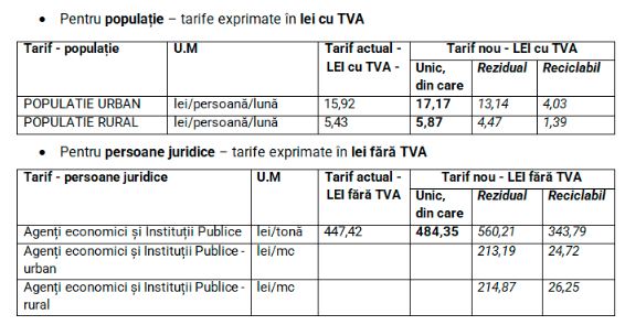 Modificarea tarifelor de colectare și transport este determinată în principal de actualizarea cu indicele prețurilor de consum.