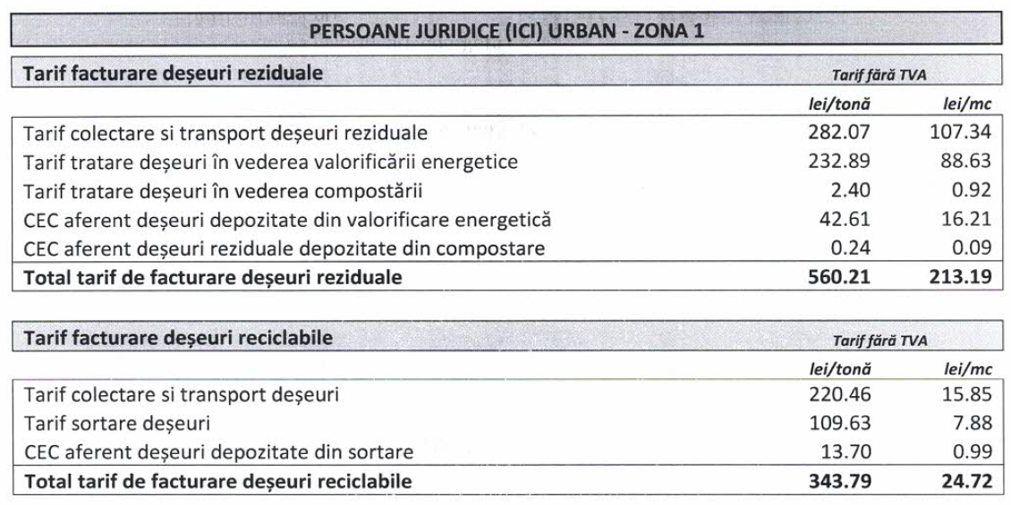 Conform noii legislații în domeniu (Ordinul nr. 640/2022, OUG 133/2022), operatorul este obligat să prezinte tarifele practicate către utilizatorii serviciului de salubritate pe toate componentele acestuia.