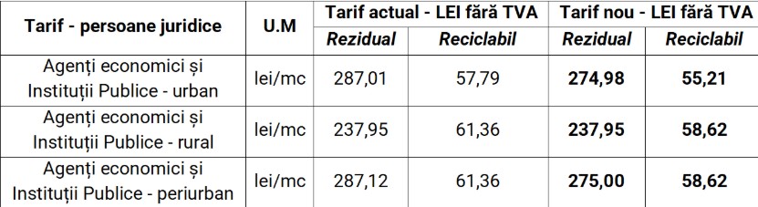 Pentru persoane juridice – tarife exprimate în lei fără TVA