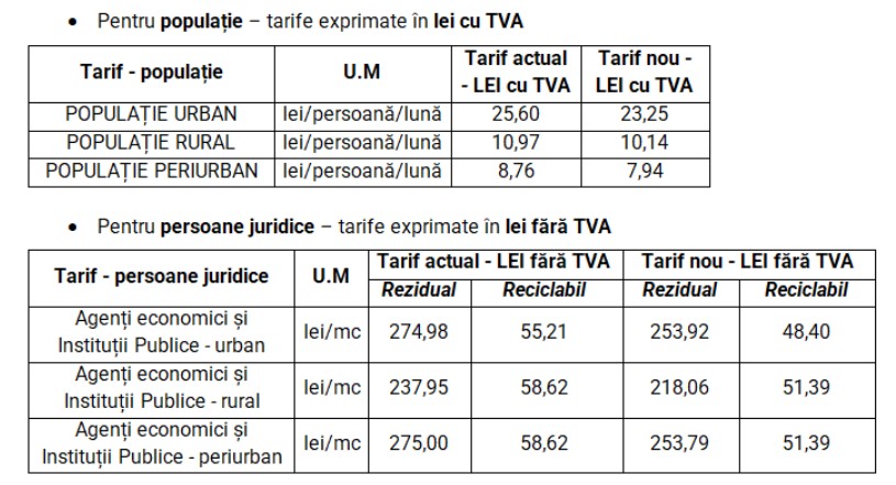Totodată, anunțăm utilizatorii serviciului de salubrizare persoane fizice, că sumele acordate care au stat la baza determinării calcului reducerii au fost aplicate utilizatorilor, pe o perioadă de 6 luni, începând cu decembrie 2024, diferențiată pe fiecare UAT în parte, în funcție de cantitățile de deșeurile reciclabile colectate, prin urmare reducerea nu va mai fi aplicată. Reducerea a fost determinată de recuperarea costurilor de gestionare a deșeurilor de ambalaje decondată de Organizațiile care Implementează Răspunderea Extinsă a Producătorilor – OIREP.