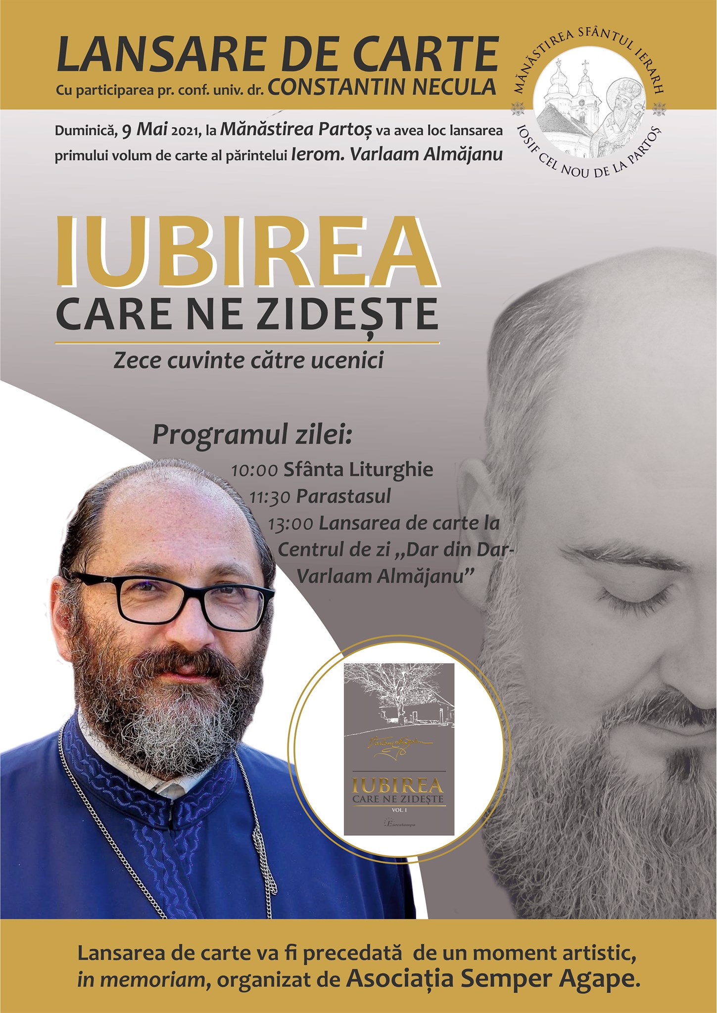 Duminică, 9 mai, la Mănăstirea Partoș va avea loc slujba de pomenire, la șase luni de la mutarea la Domnul a lui Padre. În aceeași zi, va fi și lansarea primului volum de carte al părintelui Varlaam Almăjanu: „IUBIREA CARE NE ZIDEȘTE. Zece cuvinte către ucenici”, carte care reunește cateheze din cadrul Școlilor de Duminică de la Mănăstirea Partoș. Va fi prezent și părintele conf. univ. dr. Constantin Necula, care semnează și prefața cărții.