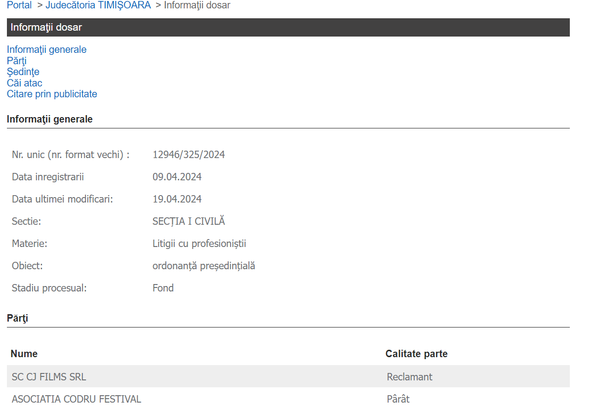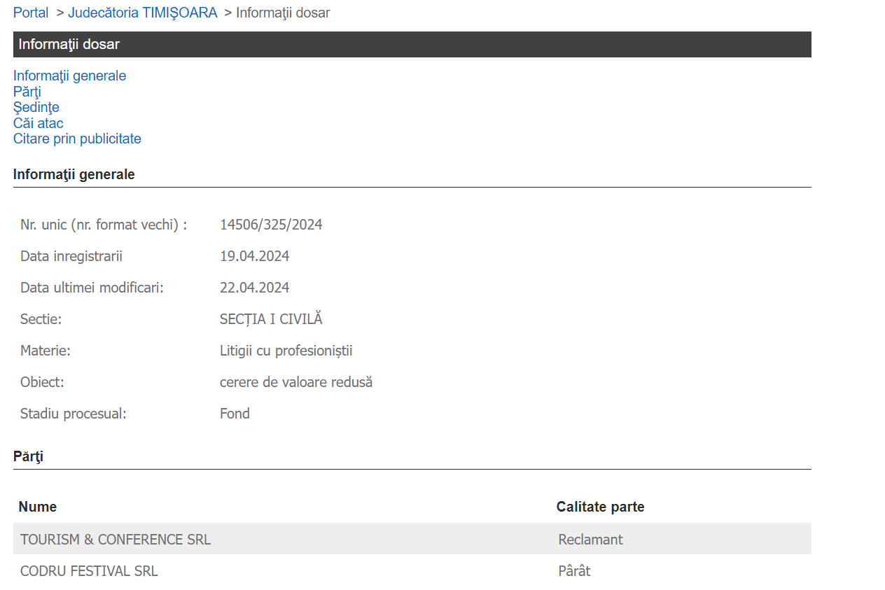 La Judecătoria Timișoara apar însă mai multe procese în care sunt implicați cei de la CODRU. Într-una dintre situații, în 18 aprilie, magistrații au decis să amâne cauza pentru data de 9 mai 2024, „pentru încercarea soluționării litigiului pe cale amiabilă”.