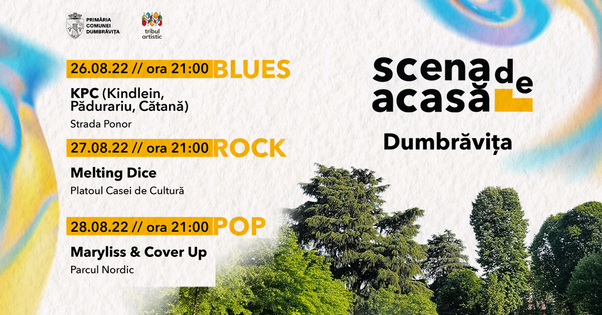 – 27 august, ora 21:00 – Concert de muzică 𝓻𝓸𝓬𝓴 susținut de trupa 𝐌𝐞𝐥𝐭𝐢𝐧𝐠 𝐃𝐢𝐜𝐞 (Platoul Casei de Cultură Dumbrăvița)