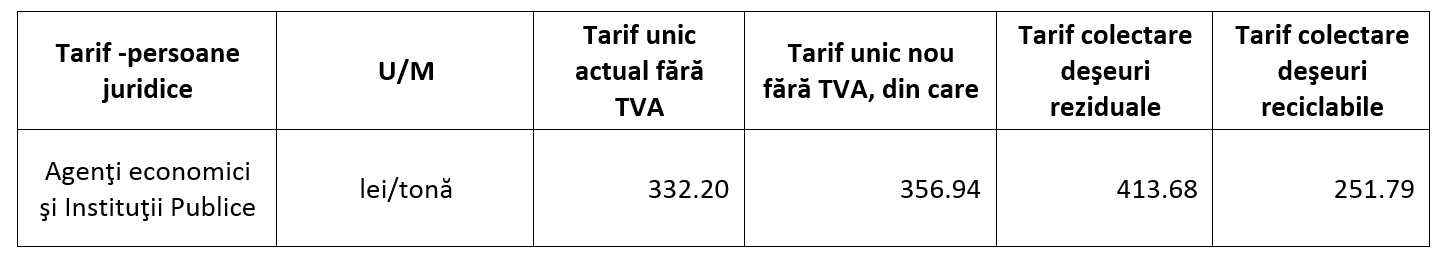 - Pentru persoane juridice – tarife exprimate în lei fără TVA