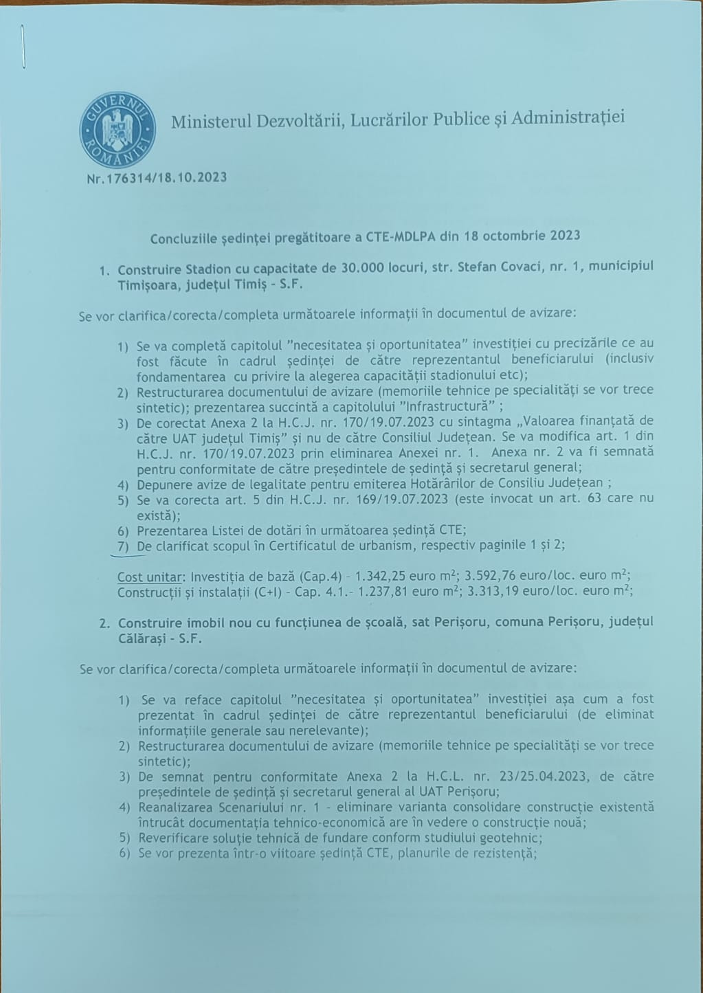 Vă amintim, recent, consilierii județeni au aprobat proiectul de hotărâre privind modificarea unei hotărâri din luna iulie care vizează aprobarea documentației tehnico – economice și a indicatorilor tehnico – economici ai proiectului de investiție publică „Construire stadion cu capacitate de 30.000 de locuri, Strada Ștefan Covaci nr.1, Timișoara” – faza studiu de fezabilitate”. Cu această ocazie, Nica a prezentat și câteva randări.