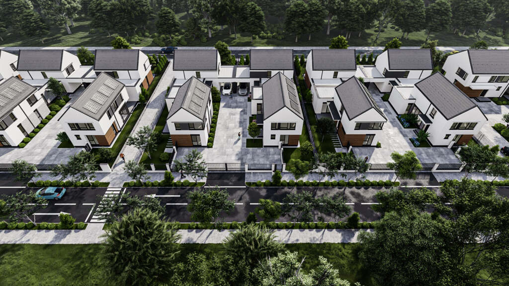 Ansamblul rezidențial Monarch Village este compus din 28 de imobile de tip vilă, care îmbină confortul unei case și avantajele unui apartament.