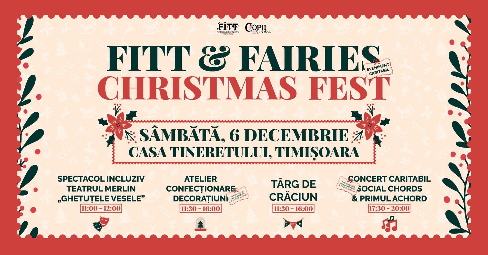 După spectacol, între 11:30 și 16:00, holul mare de la parter se transformă într-un mic Târg de Crăciun. ONG-uri timișorene vor pregăti standuri tematice, iar copiii vor putea participa la un atelier de creație unde își vor confecționa propriul ornament de Crăciun. Accesul la atelier se face pe baza unei donații de 40 de lei, fondurile fiind direcționate către proiectele Asociației Copii și Zâne.