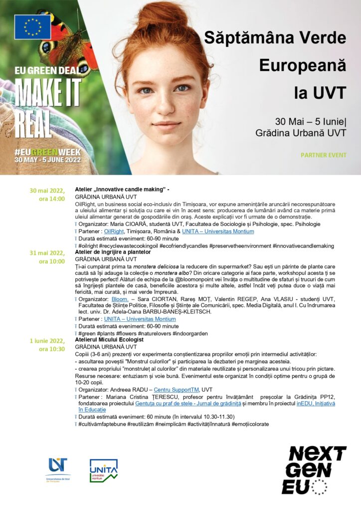 Săptămâna Verde Europeană la Universitatea de Vest din Timișoara se află la cea de-a cincea ediție. Și în 2022, evenimentul a fost selectat de Comisia Europeană ca eveniment partener al Săptămânii Verzi Europene, un program de evenimente care are loc la nivel internațional în perioada 30 mai – 5 iunie 2022.