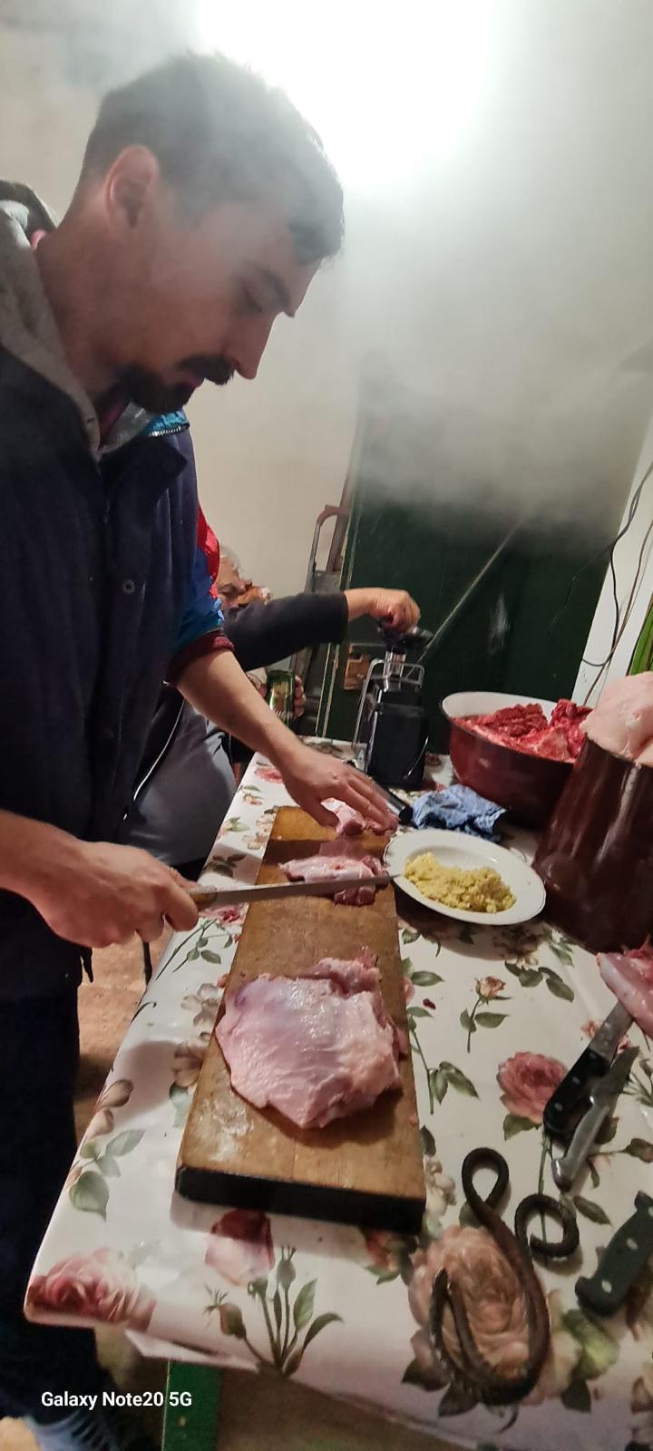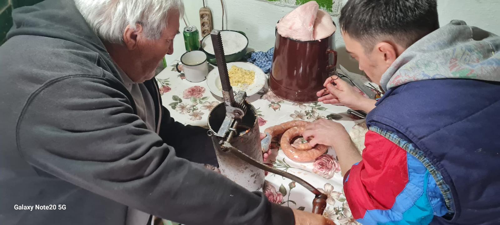 Pregătirea cărnii – Gospodinele transformă carnea proaspătă în delicatese tradiționale precum caltaboși, jumări, cârnați sau tobă, care urmează să fie puse pe masa de Crăciun.