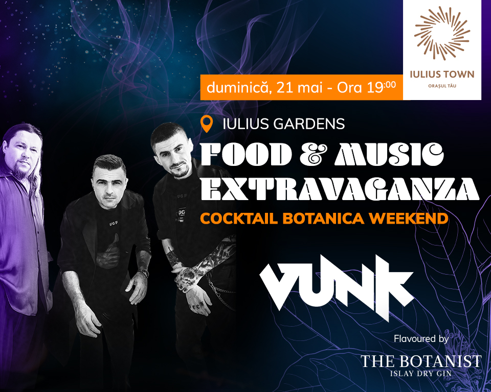 În același timp, la Iulius Town are loc Food&Music Extravaganza – Cocktail Botanica Weekend, unde restaurantele din Iulius Gardens te așteaptă cu preparate delicioase și cocktailuri savuroase. Tot în acest weekend vor avea loc concerte susținute de Lidia Buble și Vunk, iar primul Festival al artei florale – Florall din Iulius Town Timișoara, unde echipe de floriști din toată țara își vor prezenta parfumatele creații, te așteaptă să petreci un final de săptămână fresh și plin de culoare. Citește mai multe despre evenimente pe pagina de Facebook a Iulius Town!