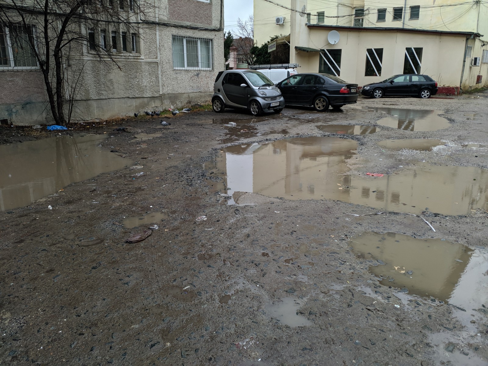 „Vă scriu pentru a vă prezenta situația jalnică în care se află parcarea, respectiv intrarea în blocul 14 de pe str. Daliei nr. 11. Am depus nenumărate sesizări în numele asociației de proprietari la primărie, însă nu am primit niciun răspuns. Am primit, în schimb, promisiuni de la domnul primar, dar în cei cinci ani de când locuiesc în bloc nu s-a schimbat nimic. La fiecare ploaie, gropile dfăcute de mașinile de mare tonaj care aprovizionează supermarketul din zonă și clubul de lângă bloc se umplu cu apă, accesul în bloc devenind un calvar”, ne-a scris Cătălin C., un alt cititor.