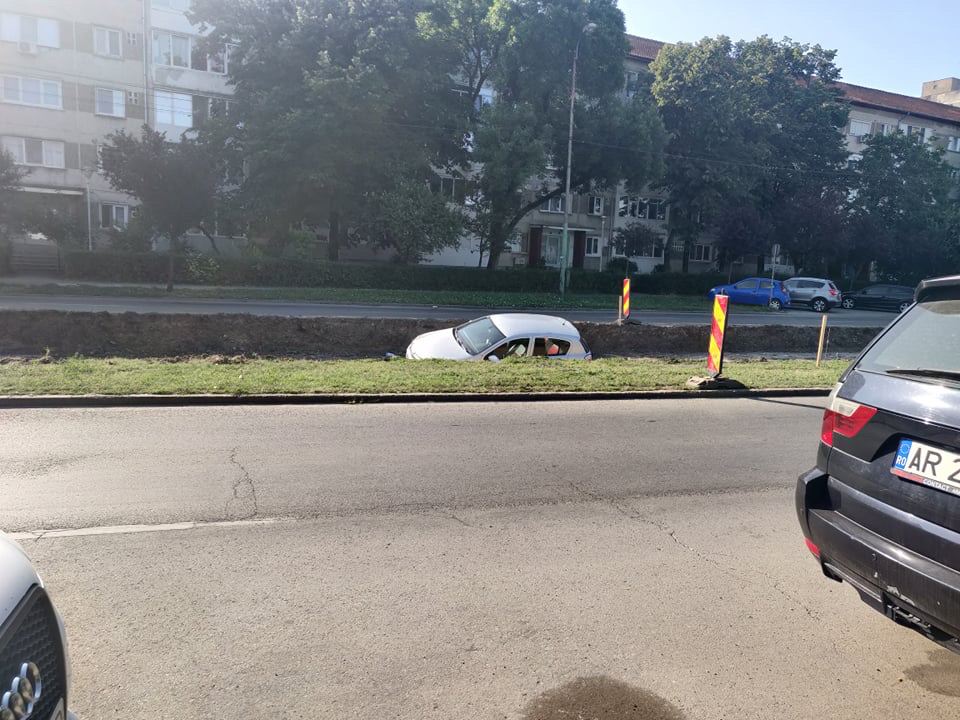 Pe bd. Cetății se circulă cu restricții de circulație încă de la începerea șantierului, din 28 iunie. Timp de trei luni este închis sensul de mers dintre intersecția cu Bogdăneștilor și Gheorghe Lazăr, iar șoferii folosesc celălalt sens de circulație, în ambele direcții. Muncitorii contractați de primărie au scos liniile de tramvai și au început să sape și după intersecția cu Gh. Lazăr. După ce au fost scoase șinele s-a trecut la săparea mijlocului bulevardului, iar un șofer fie prea grăbit, fie căruia i s-a făcut rău, a ajuns cu mașina în groapă.