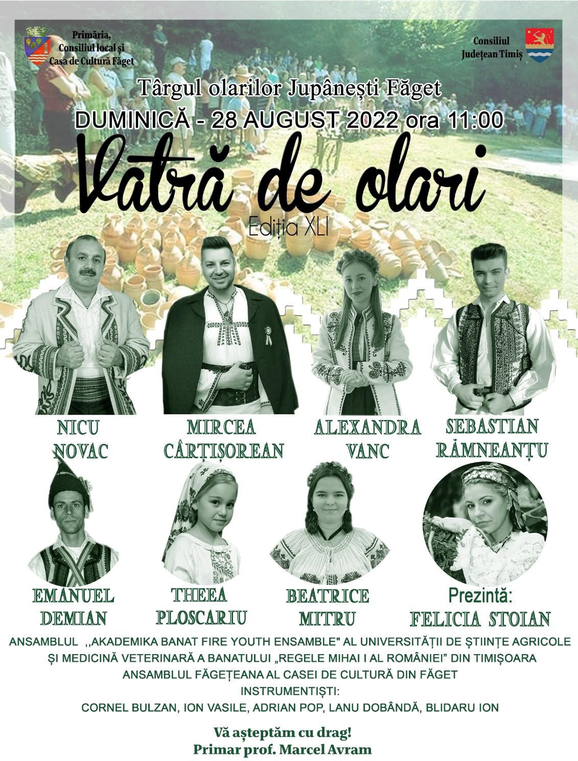 Evenimentul intitulat „Vatra de olari” ajunge la ediția cu numărul 41 anul acesta și este organizat de Primăria, Consiliul Local şi Casa de Cultură din Făget cu sprijinul Consiliului Județean Timiș.