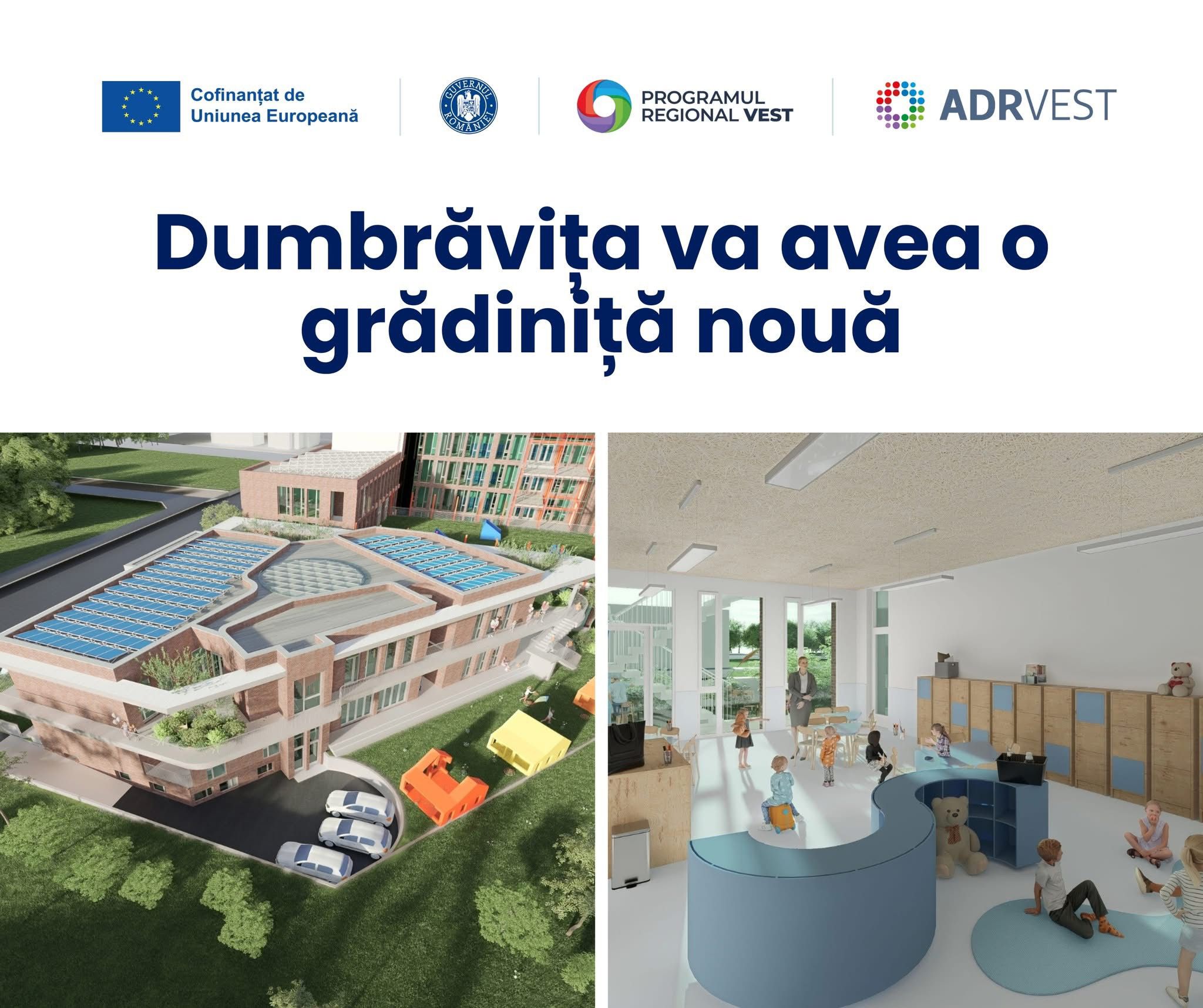 La aproape cinci luni de când a început construcția noii grădinițe din zona Cora, reprezentanții Primăriei Dumbrăvița anunță că a fost câștigată o finanțare europeană, prin Programul Regional Vest. Aceasta va aduce bugetului local o economie de 1,8 milioane de euro.