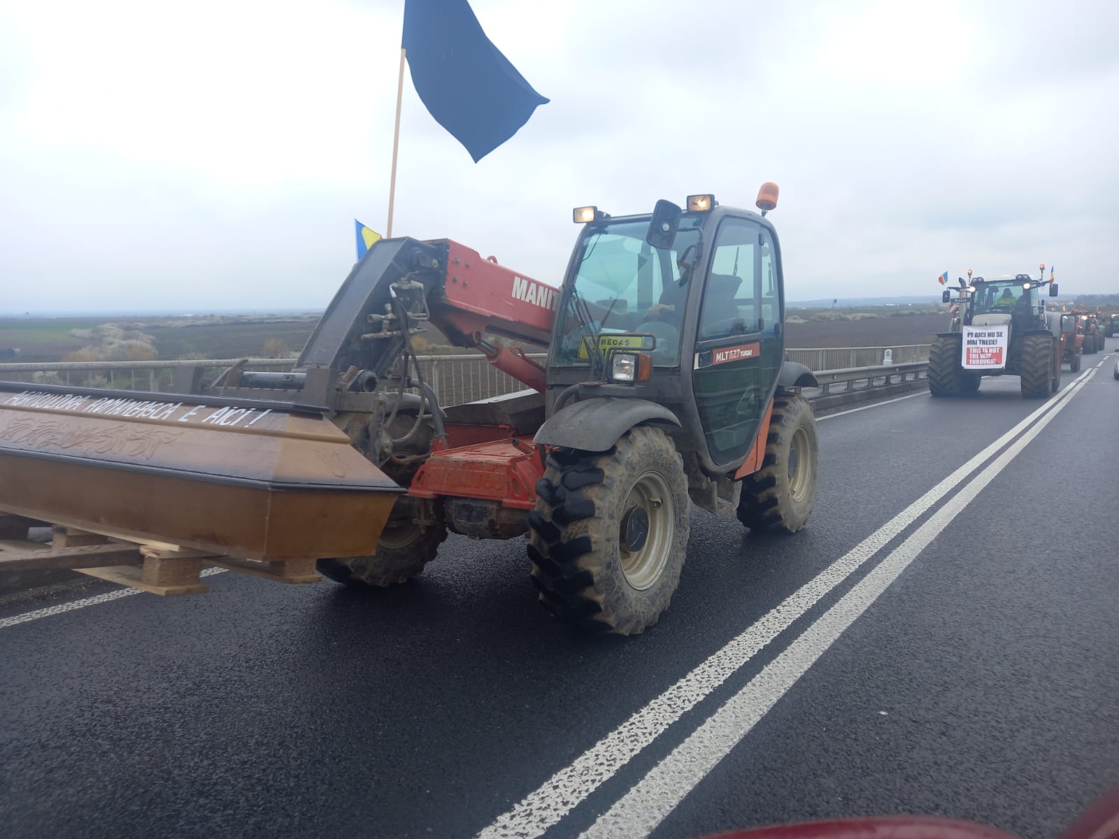 Fermieri care am ieșit astăzi in aceea zona, am ieșit pentru a trage un semnal de alarma cu privința la prețurile pieței din ziua de astăzi. Nu am vrut sa creem nici un disconfort, de aceea am circulat, am lăsat mașinile sa treacă și nu am blocat nici un drum!