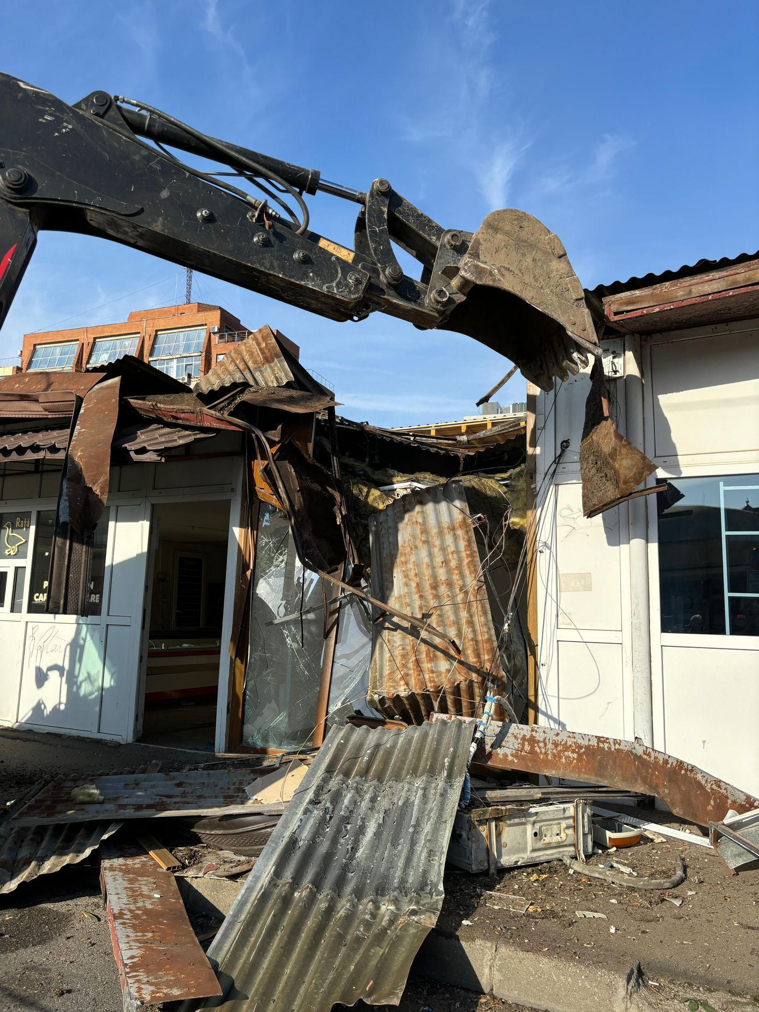 Acesta nu a făcut nimic, iar marți, 24 septembrie, municipalitatea a trimis echipele de la Colterm și de la Poliția Locală, pentru a verifica dacă acestea sunt libere și pentru a începe demolarea propriu-zisă. Operațiunea este programată să se desfășoare pe parcursul întregii zile.