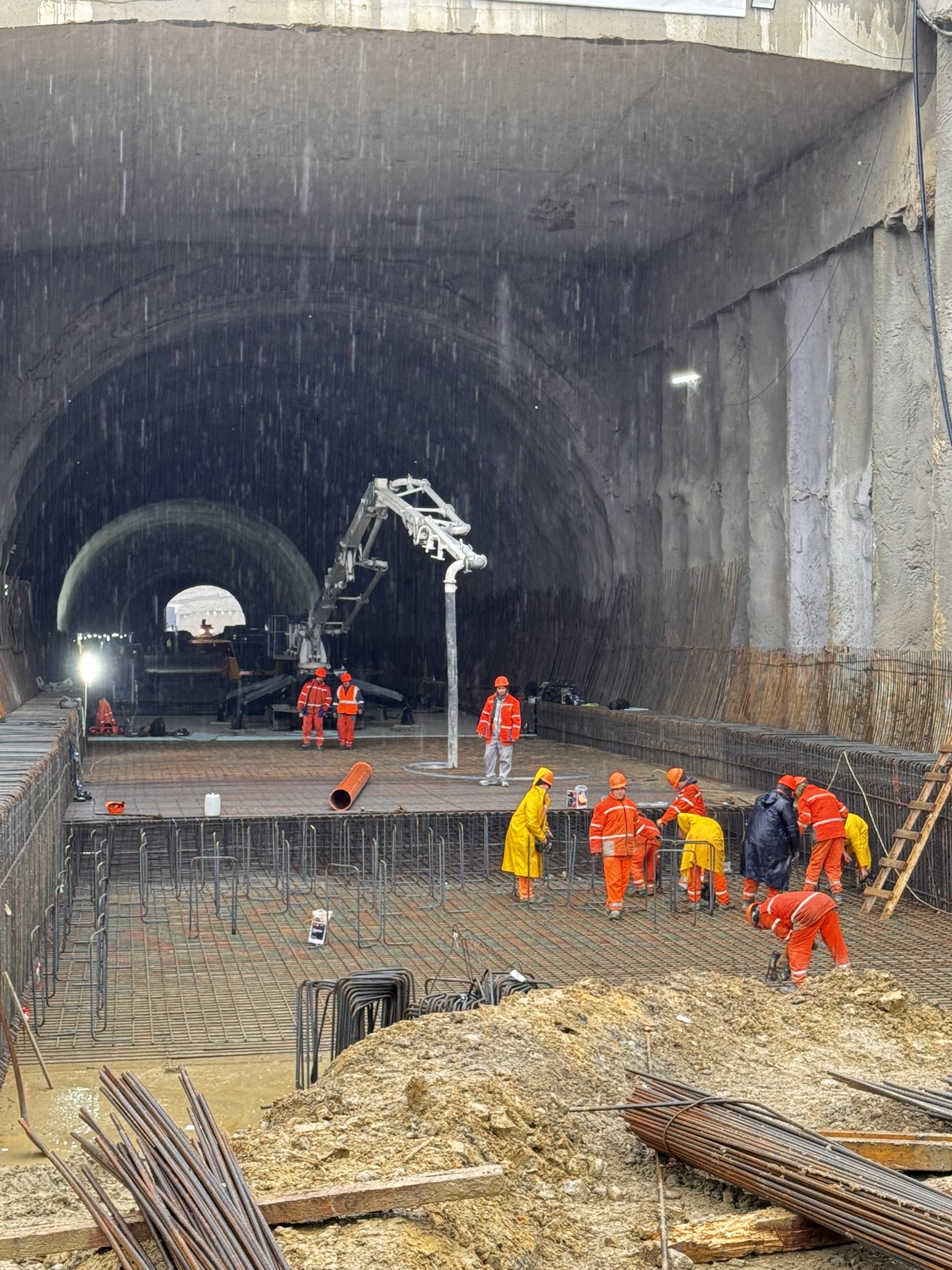 Tunelul 1 – Ambele galerii au fost deja străpunse și se lucrează acum la partea structurală: montare hidroizolație, armarea radierului și a banchinelor, inclusiv betonarea acestora.