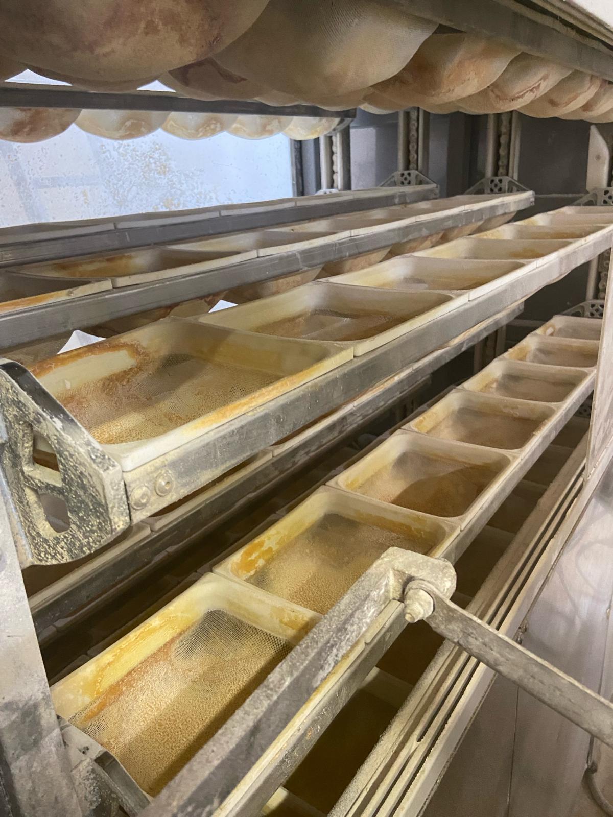 - în spațiul de producție existau 2 dospitoare, în interiorul acestora, rama din PVC prezentând zone întinse de igrasie, iar ușa de acces din inox prezenta murdărie.