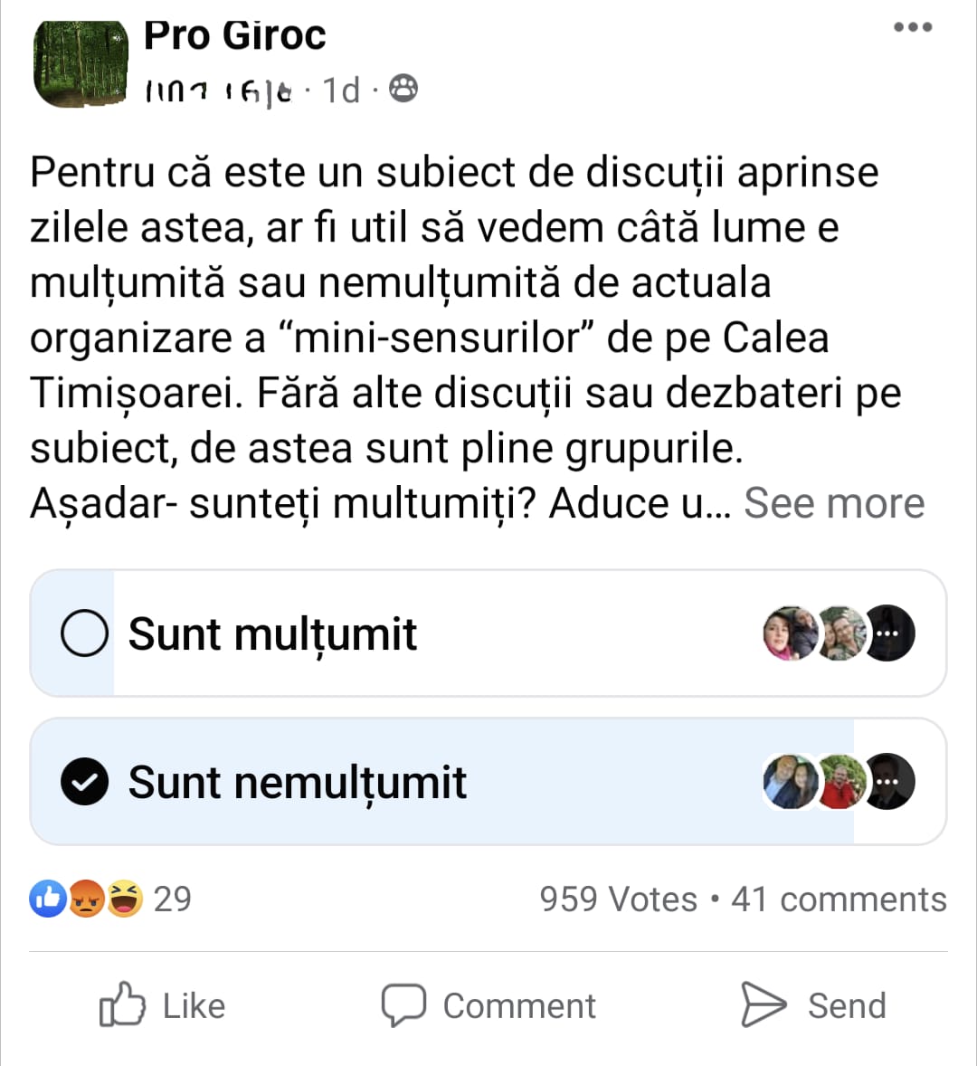 „Noile sensuri giratorii din Giroc, Calea Timișoarei, mai rău încurcă traficul decât îl îmbunătățesc, au reușit să nemulțumească o întreagă comunitate!”, spune un altul.