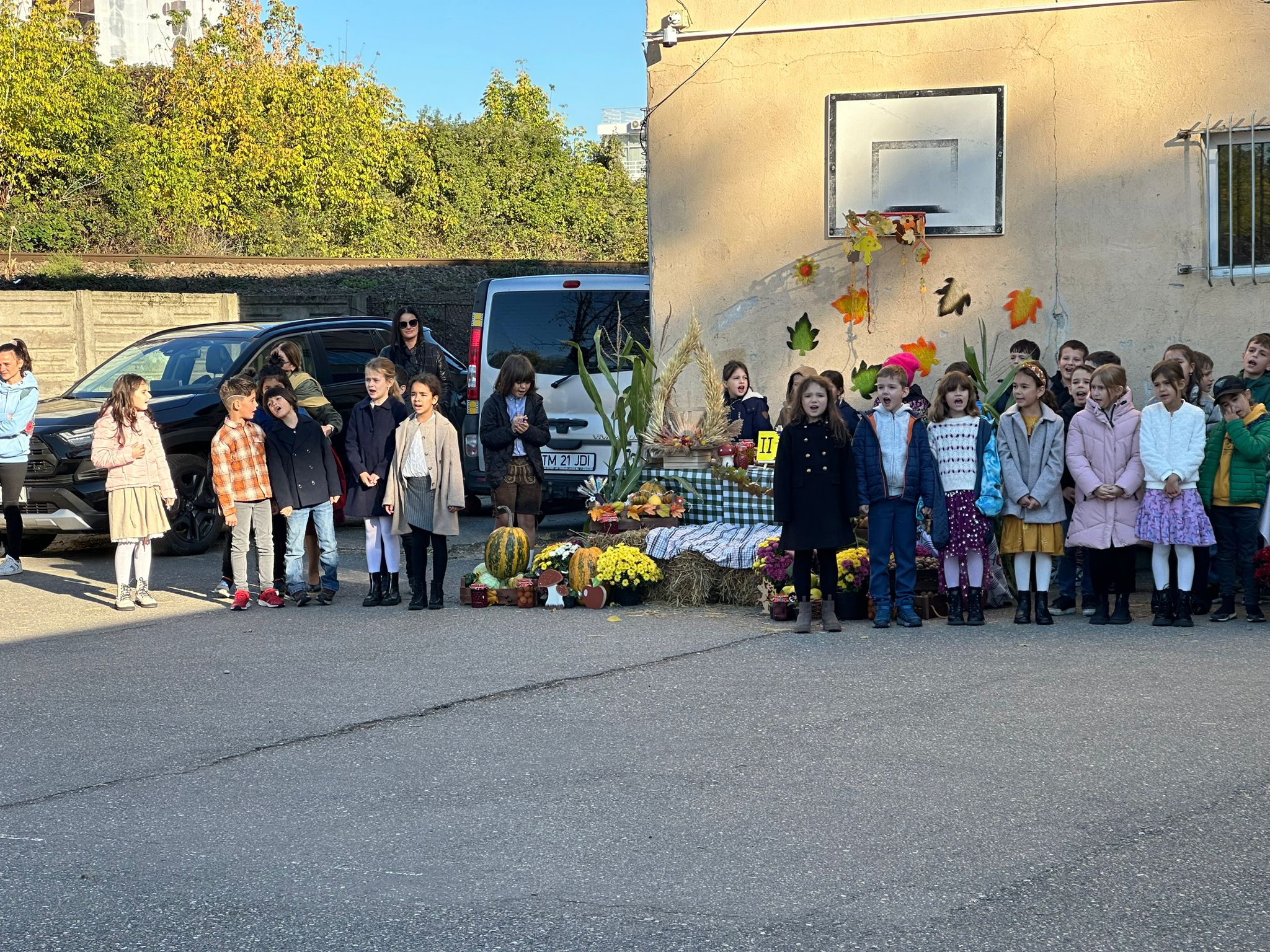 Încă de dimineață, copiii din clasele primare de la Liceul Nikolaus Lenau din Timișoara s-au pregătit cu bucate aduse de părinți, aranjate frumos pe mese festiv decorate. Și nu doar pe mese, pentru că și în mijlocul curții au fost așezată o grămadă frumoasă de roade fructifere și legumicole, în culorile specifice toamnei.