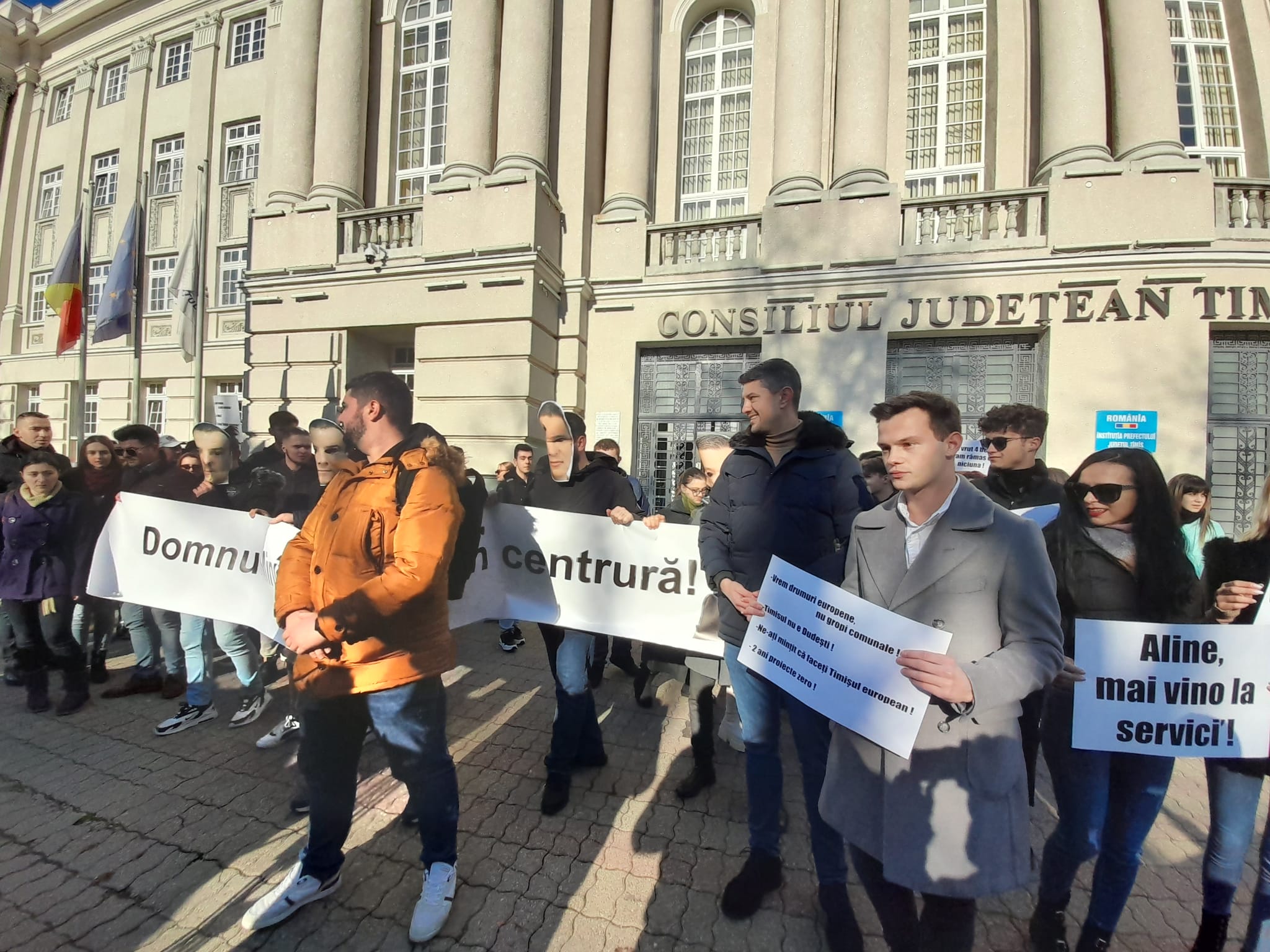 UPDATE. Protest cu greșeli gramaticale în fața Consiliului Județean Timiș