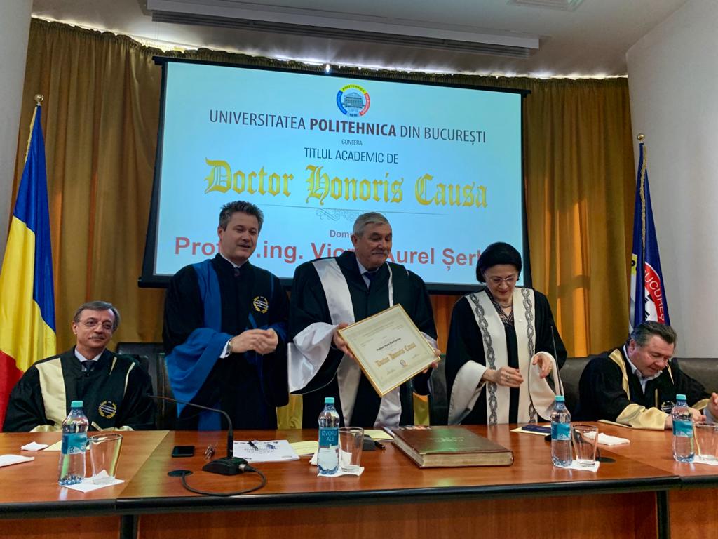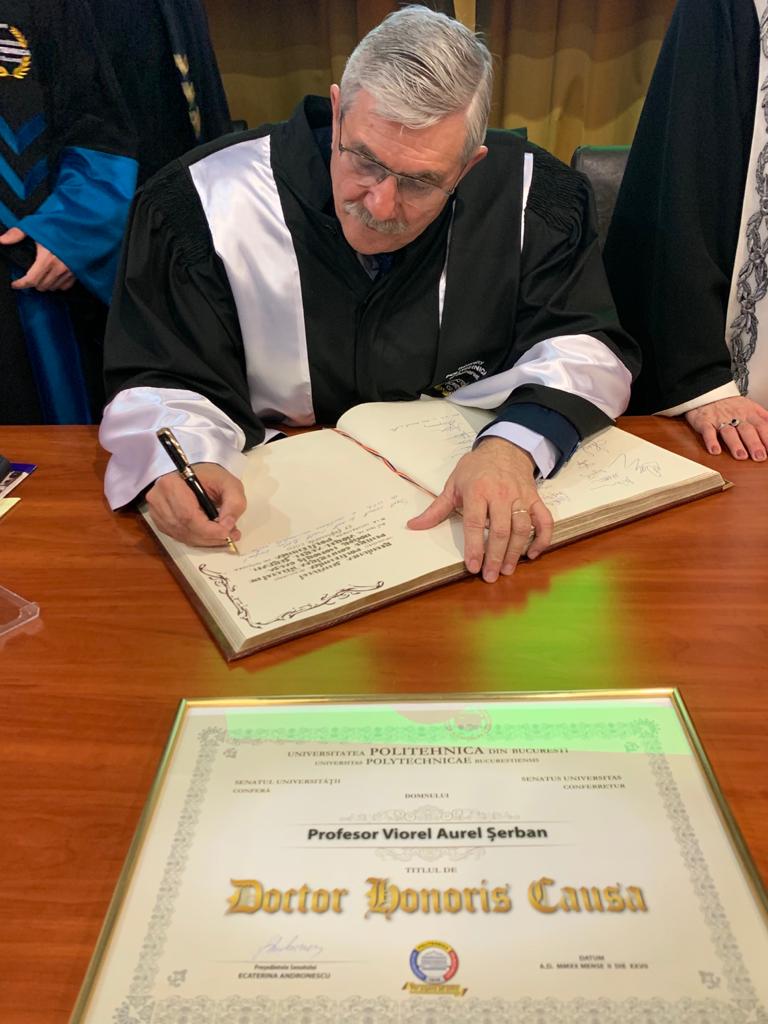 „Pentru întreaga activitate științifică, didactică, managerială și de colaborare cu universitatea noastră, pentru rezultatele remarcabile prin care care s-a concretizat această activitate, Senatul Universității Politehnica din București a hotărât acordarea celui mai înalt titlu academic, DOCTOR HONORIS CAUSA, domnului Profesor Viorel-Aurel Șerban”, se menţionează, printre altele, în motivarea acordării titlului.