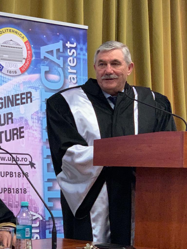 În cadrul ceremoniei solemne, care s-a desfășurat joi, 27 februarie 2020, au fost evidențiate meritele rectorului UPT Viorel-Aurel Șerban, atât în plan științific, cât și din punct de vedere al managementului academic și al impulsionării relațiilor de colaborare între Universitatea Politehnica Timișoara pe de o parte, și Universitatea Politehnica din București, de cealaltă parte.