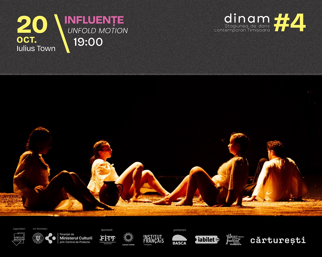 În Iulius Mall, zona Atrium, duminică, de la ora 19.00, va avea loc spectacolul de dans contemporan „Influențe”, care își propune să aducă în fața publicului „drumul” pe care fiecare persoană ajunge să îl parcurgă pentru a-și descoperi propria identitate. Accesul la eveniment este gratuit. Proiectul este implementat de Asociația Unfold Motion și face parte din Programul cultural național „Timișoara Capitală Europeană a Culturii în anul 2023”.