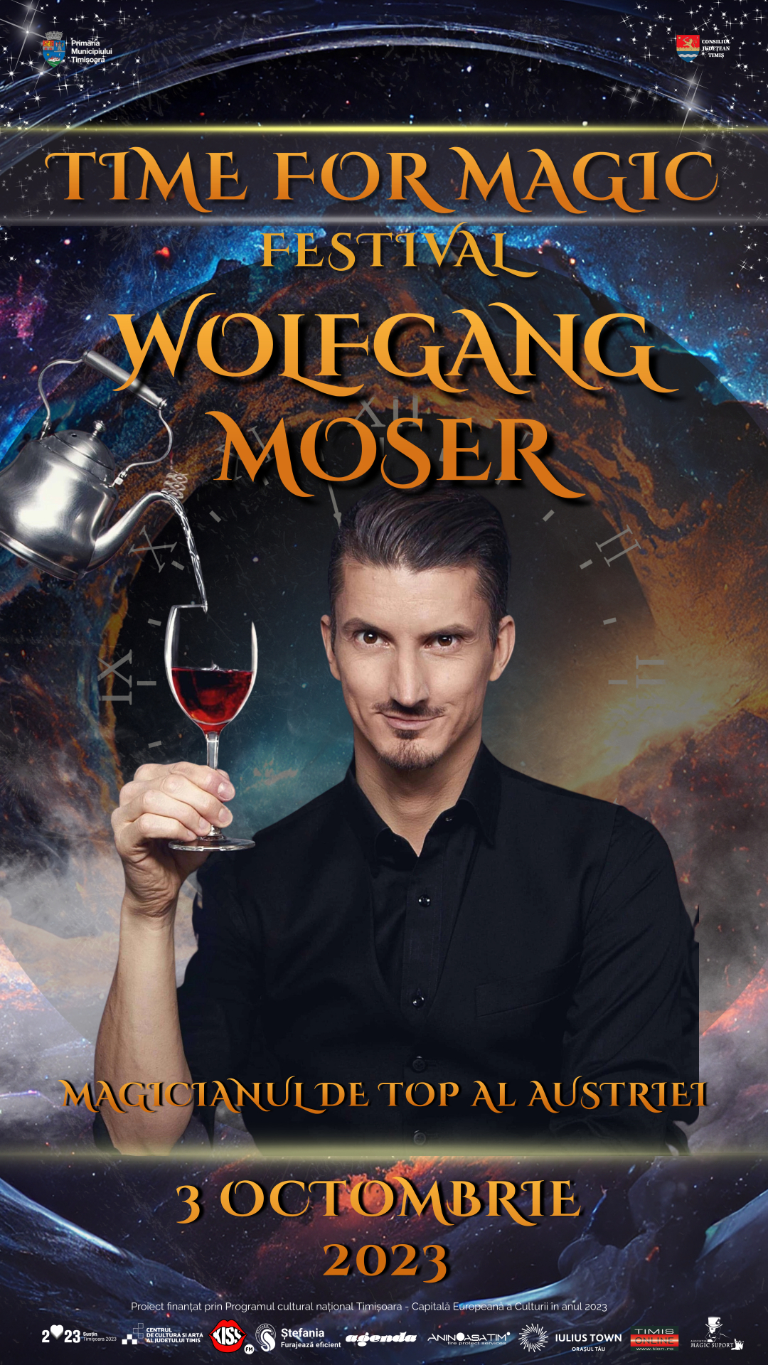 Spectacolul de magie “MIRACULUM”, susținut de Wolfgang Moser, poate fi văzut în premieră în România, la “Time For Magic”, ce se desfășoară la Timișoara în perioada 3-7 octombrie. Show-ul va fi prezentat în limba germană și va avea loc la Cinema Victoria, în 3 octombrie, de la ora 18.00. Vârsta recomandată este de la 12 ani, iar prețul biletului este de doar 100 de lei.