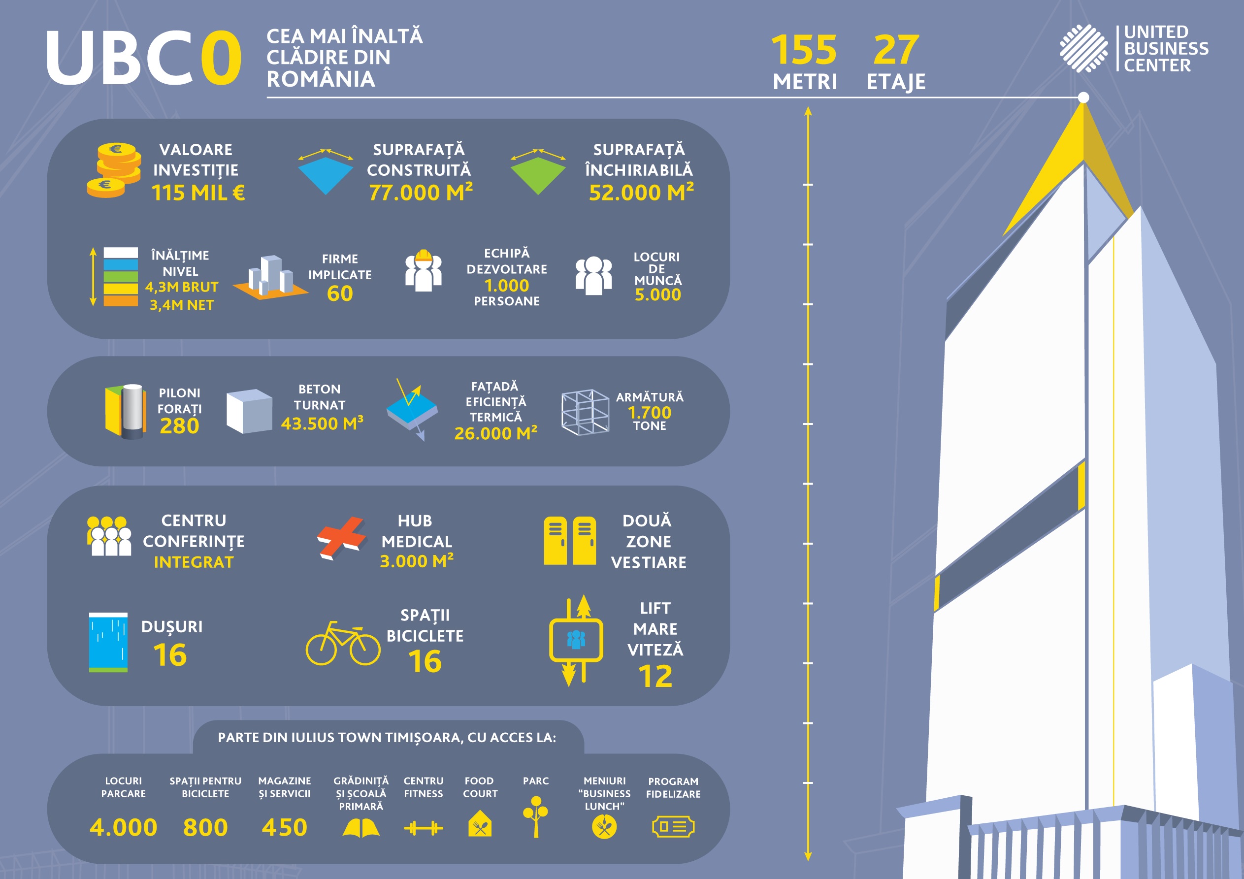 Proiectul reprezintă unul dintre cele mai solicitante șantiere active din regiunea de vest a țării, un generator pentru piața muncii și al oportunităților pentru businessurile din domeniu, mai ales în această perioadă. Până în prezent, aproximativ 30 de firme din arii de activitate conexe construcțiilor au fost implicate în lucrările de edificare, iar numărul lor se va dubla până la finalizarea proiectului. De asemenea, se estimează că peste 1.000 de persoane vor lucra la înălțarea UBC 0. Termenul de finalizare al clădirii record va fi finalul anului 2021. „Într-o perioadă de incertitudine și cu provocări pentru toate domeniile de activitate, UBC o și-a continuat etapele de dezvoltare, în același ritm. Este rezultatul faptului că portofoliul IULIUS nu se axează pe investiții speculative, ci pe parteneriate concrete și în consens cu cerințele pieței. Pe lângă unicitatea conceptului, UBC o reprezintă și un pilon de susținere a diferite specialități în perioada de dezvoltare, acea provocare ce pune piața în mișcare și care generează performanță locală”, a spus Laurențiu Manea, Office Buildings Manager Iulius Town Timișoara.