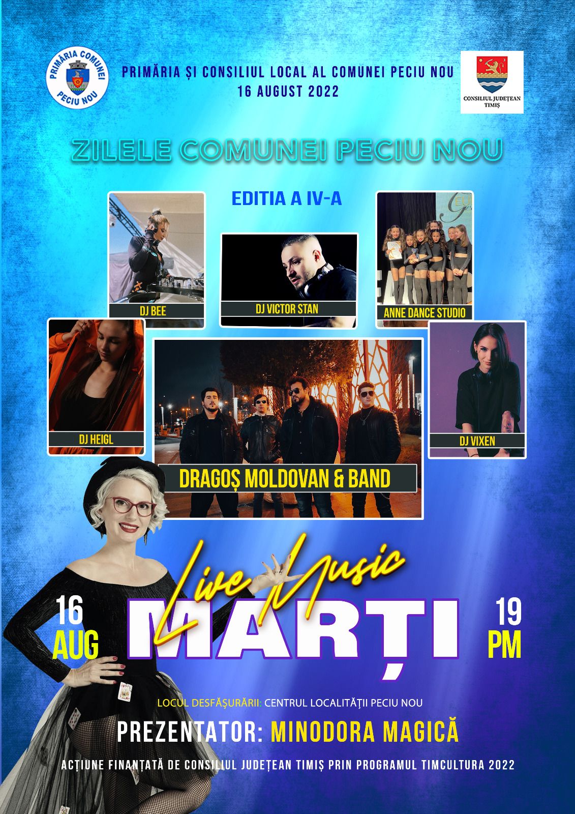 Marți, 16 august, pe scenă vor urca DJ Victor Stan, Dragoș Moldovan cu trupa lui și alții.