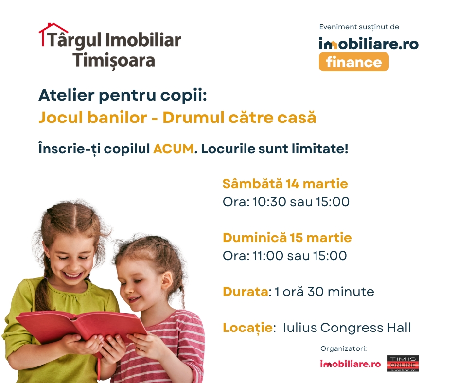 Activitatea este susținută de echipa Imobiliare.ro Finance. Participarea este gratuită, însă locurile sunt limitate. Înscrierile se fac de AICI.