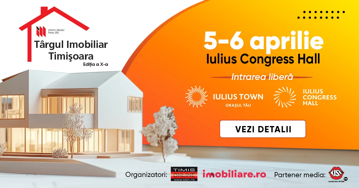 Evenimentul se desfășoară în perioada 5-6 aprilie la Iulius Congress Hall. Găsești mai multe detalii AICI. Hai la Târgul Imobiliar Timișoara să-ți găsești creditul potrivit, dar și locuința perfectă!